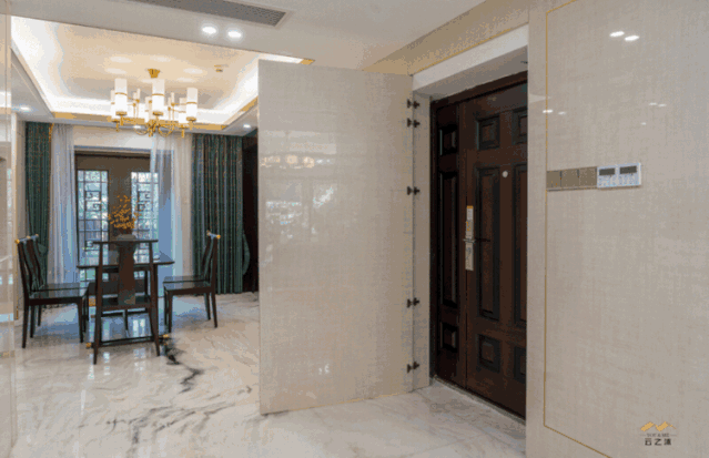 將原始的入戶門設(shè)計成“隱形門”,用統(tǒng)一的色調(diào)覆蓋周圍墻體。